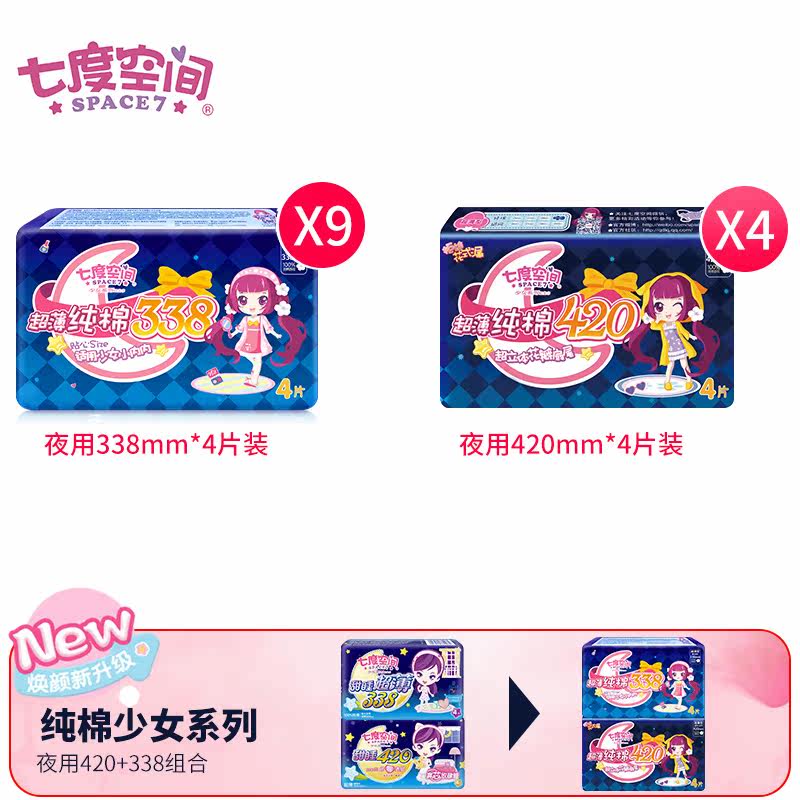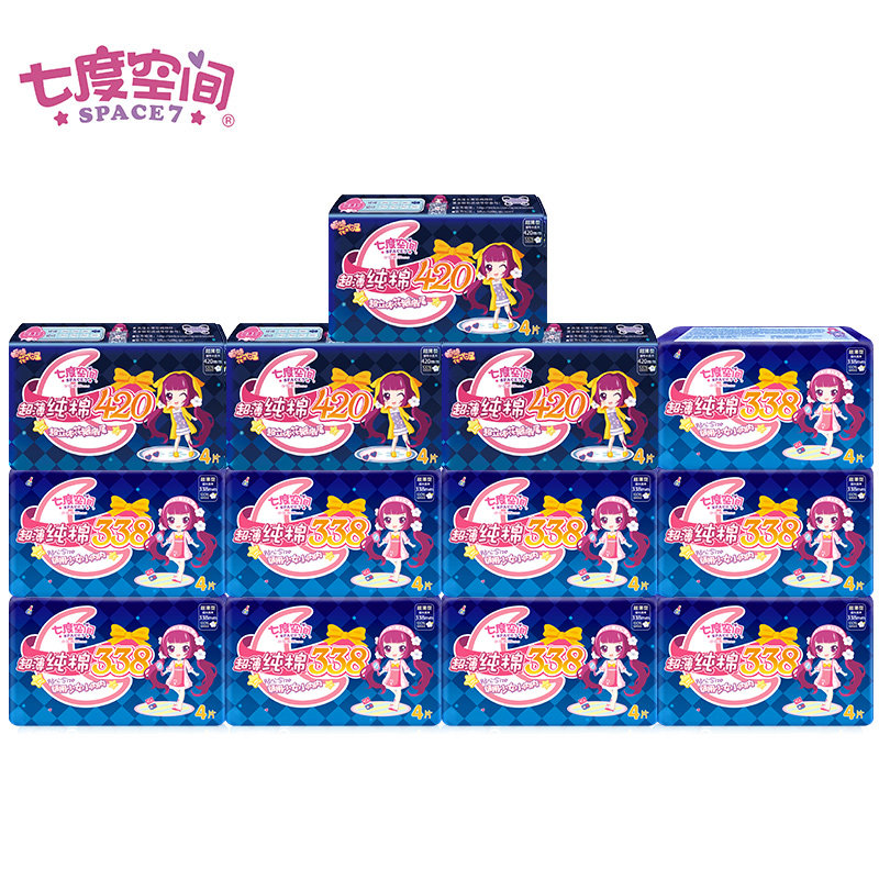 Seven-degree space sanitary cotton female pure cotton ultra-long night with 420mm ultra-thin aunt towel combination suit whole box wholesale