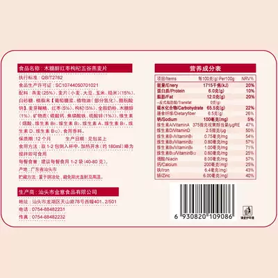 Oatmeal, white sugar, red dates, wolfberry, whole milk powder xylitol, etc.