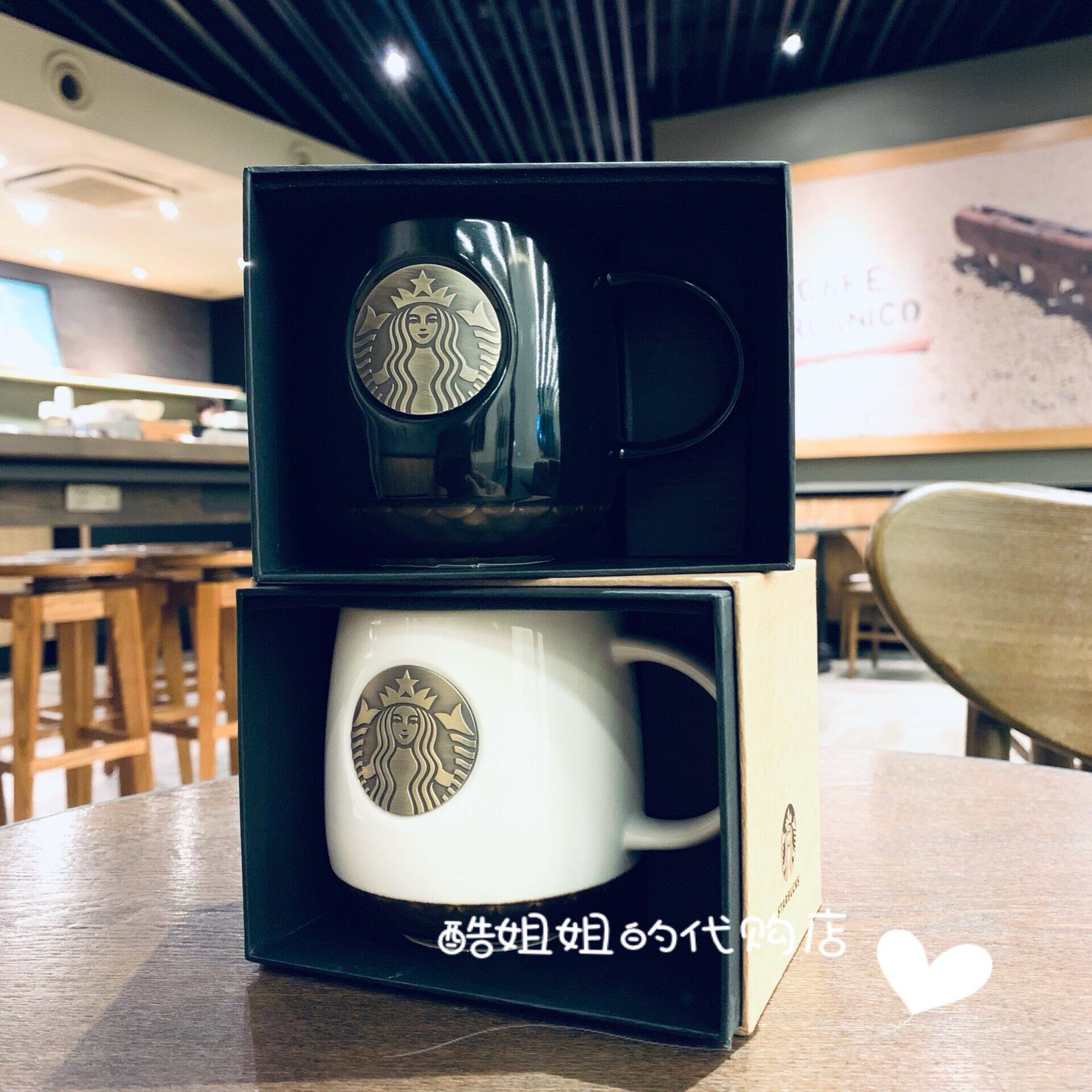 Bronze Badge Pair (Black + White) White Bronze Badge Black Bronze Badge Black Classic Mark Cup White Classic Mark Cup 414ml Classic Black Gold Bronze Seal Mark Cup Classic Pair (black