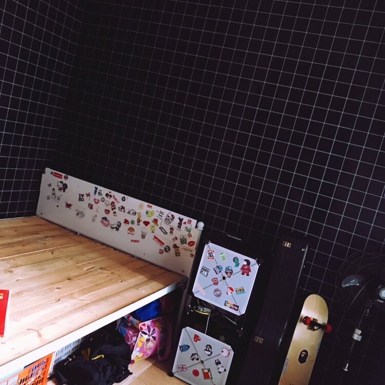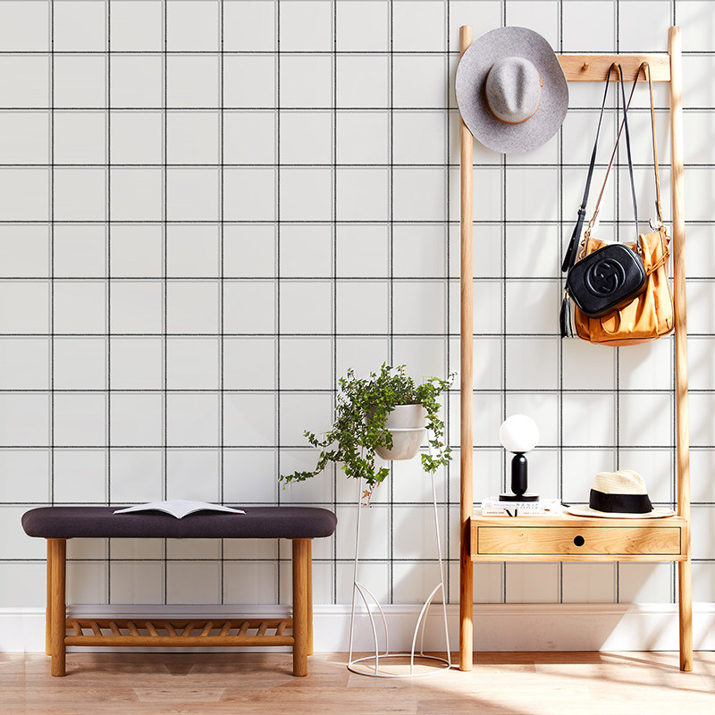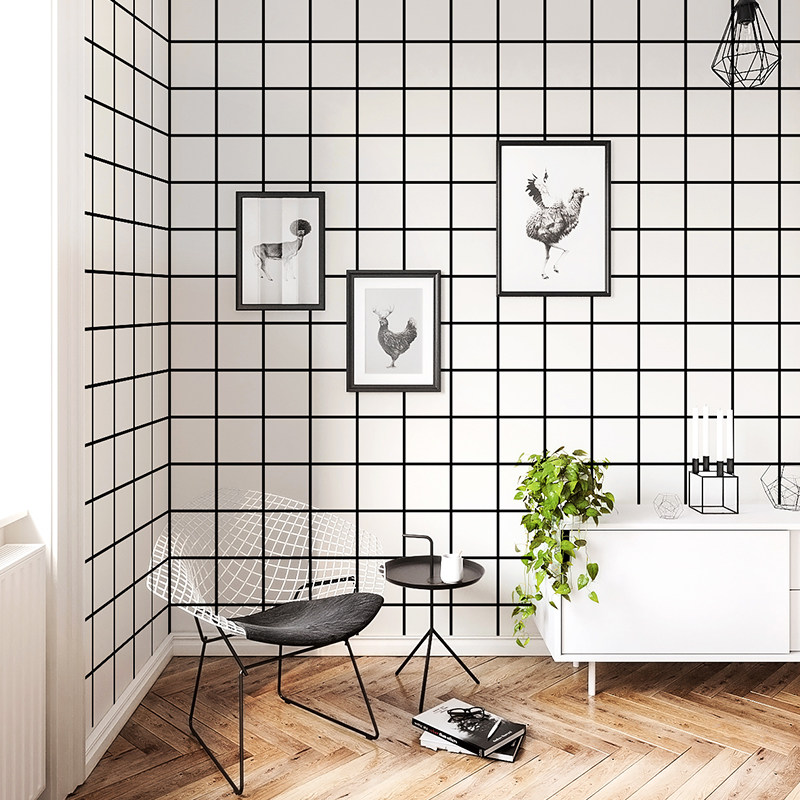 Black Nordic style wallpaper Off-white Korean lattice wallpaper Simple wallpaper Anchor background wall lamp shop