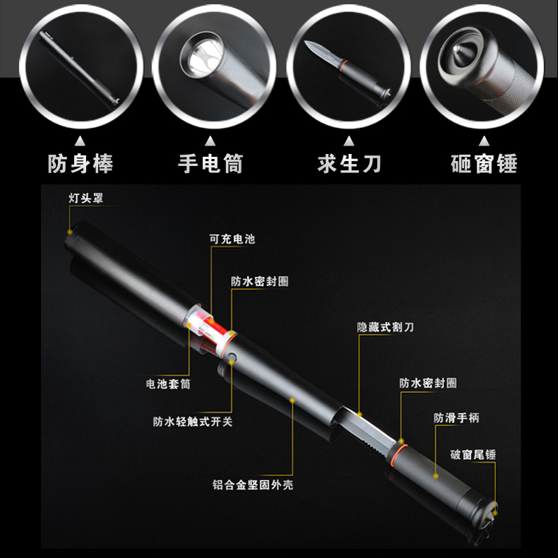Mitsubishi OutlanderPAJERO Jinxuan car with multi-function safety hammer escape hammer self-defense stick strong light flashlight