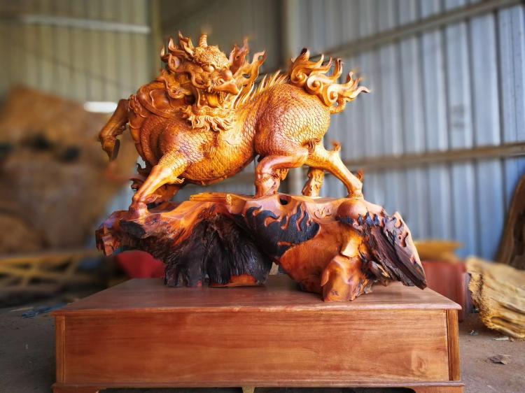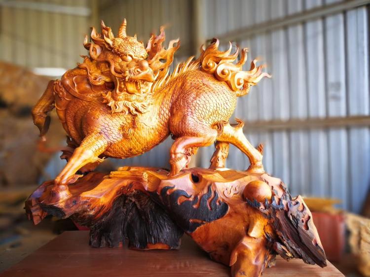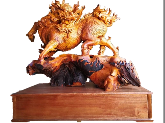 Large rosewood root carving Unicorn ornaments Lucky town house Rui Beast animal living room Feng Shui decoration Mahogany crafts