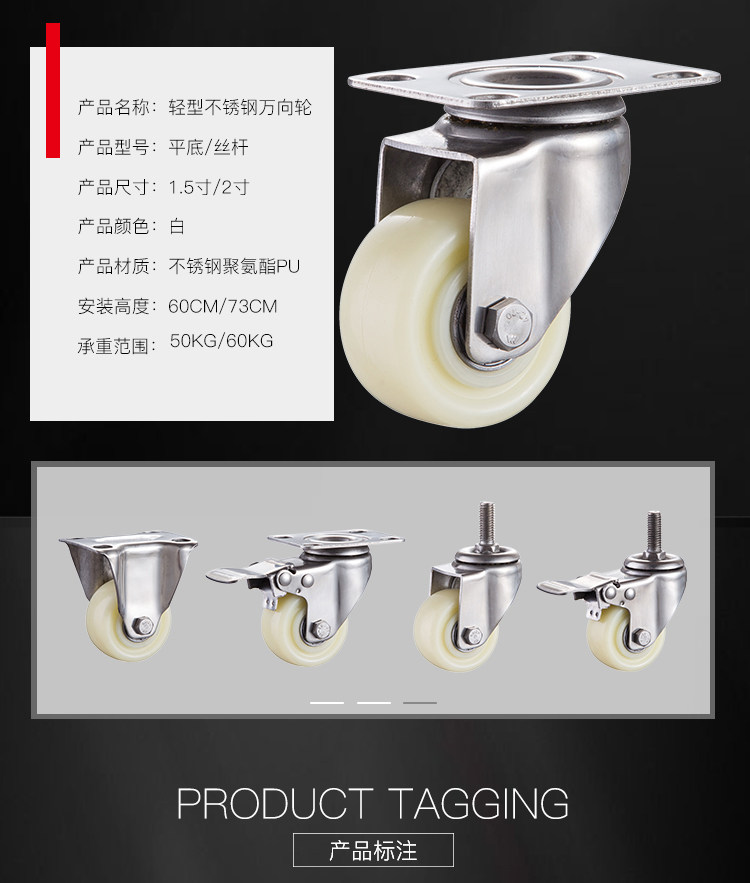 White nylon 1 5 inch stainless steel directional wheel white nylon 1 5 inch stainless steel universal wheel white nylon 1 5 inch stainless steel brake wheel white nylon 2 inch stainless steel directional wheel white nylon 2 inch stainless steel universal