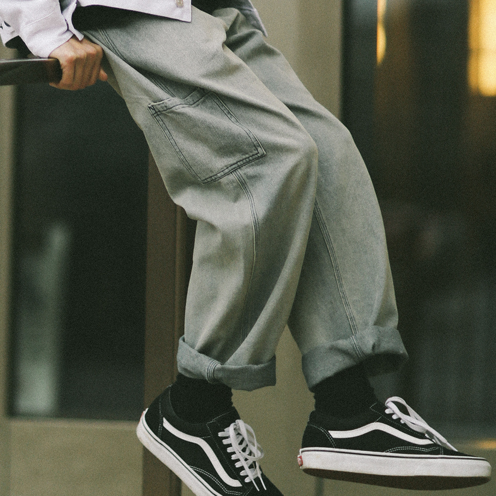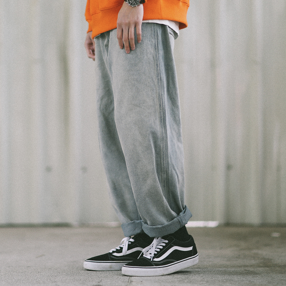 PSO Brand 90'S JEANS Retro loose straight cylinder washed with light-coloured jeans