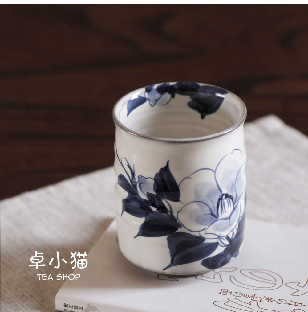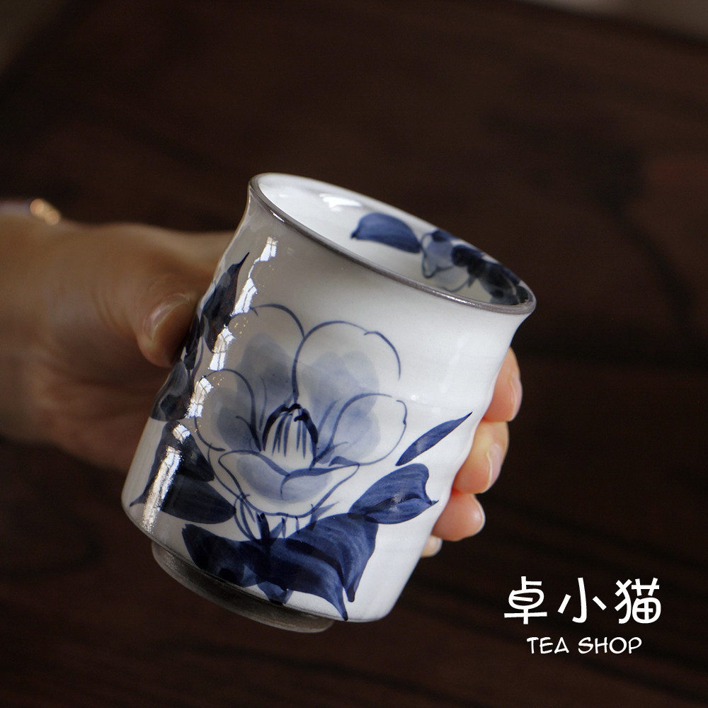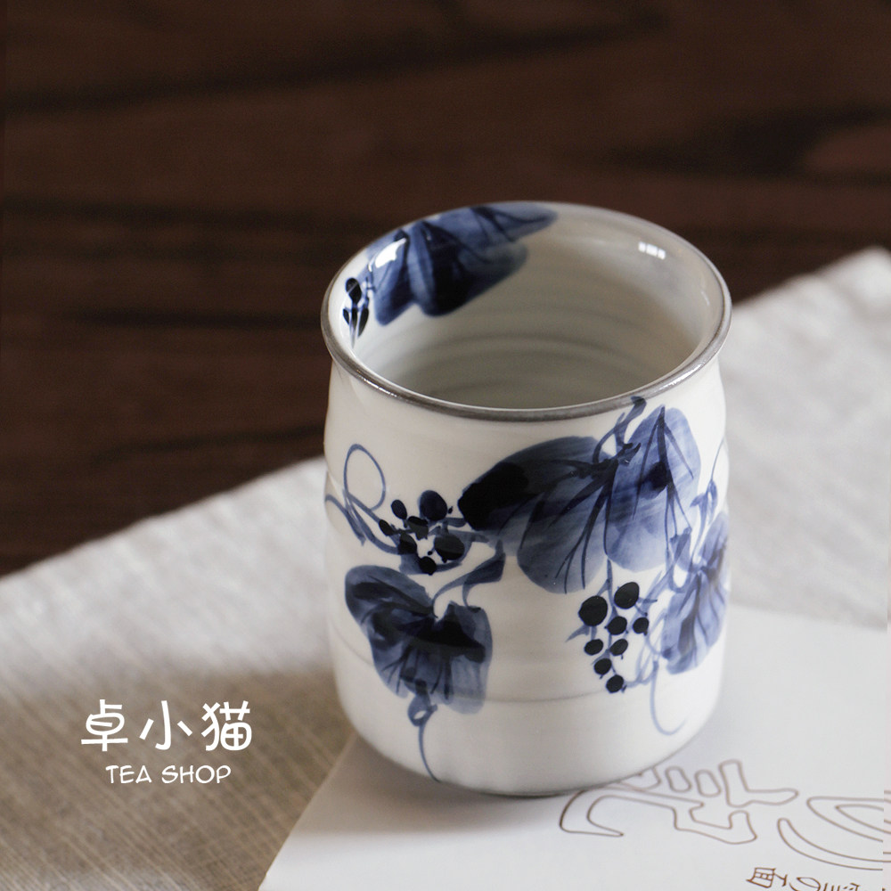 Japan imported Kyoyaki Shimizu-yaki Blue Senfu Tsubaki flower grape soup Swallow Japanese style tea cup Water cup
