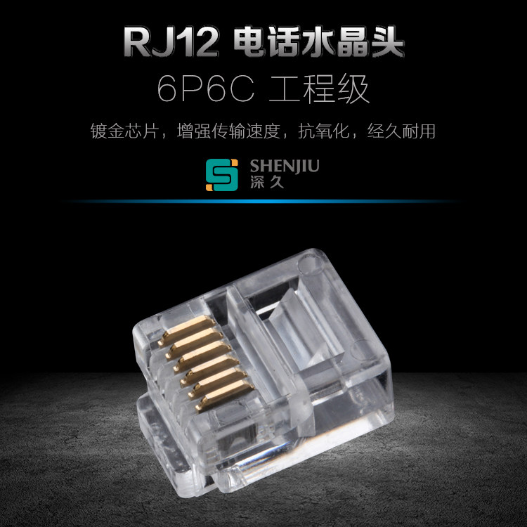 Original Shenjiu 6 core RJ11 telephone crystal head 6P6C CNC flat wire RJ12 telephone line crystal head