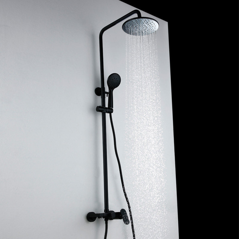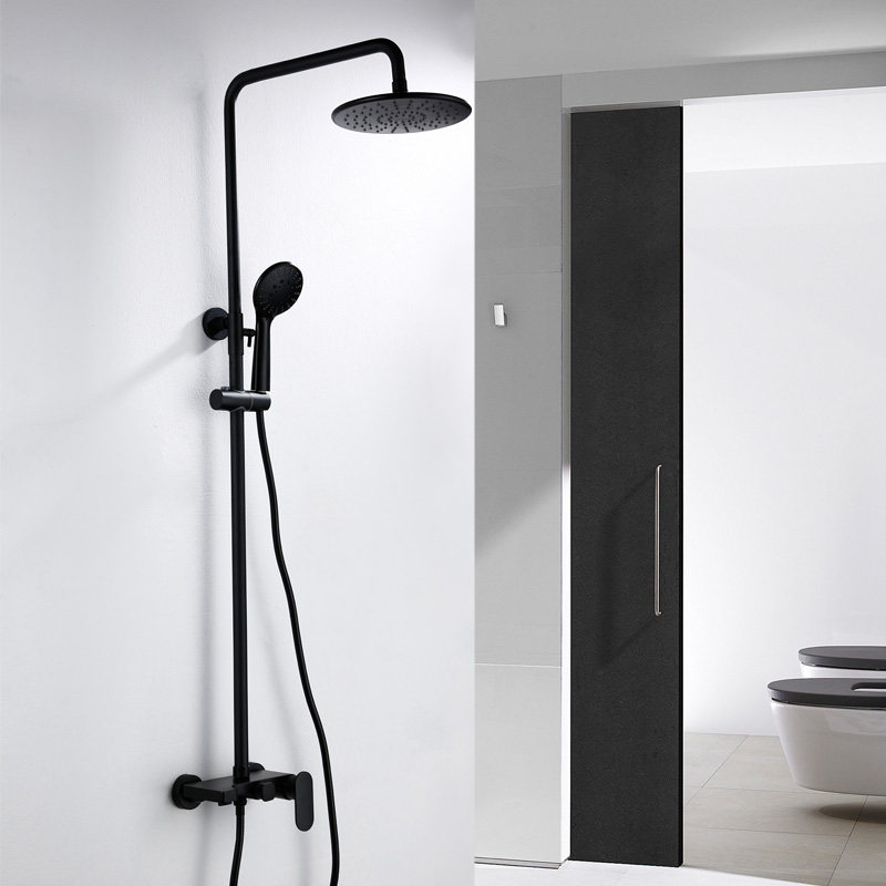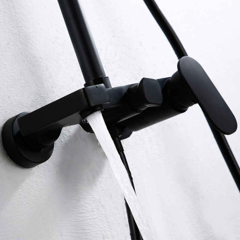 All-copper European-style black matte matte shower shower set wall-mounted all-copper shower faucet booster nozzle