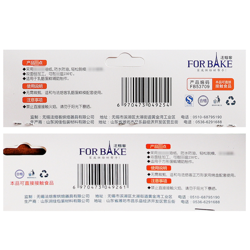 Milk Cheese Cake Conditioning Paper FB53709 Square Cake Conditioning Paper FB53710