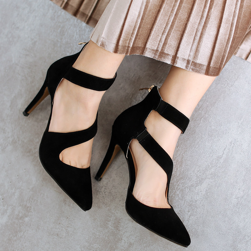 2022 spring new women's shoes pointed toe shallow mouth hollow leather bag shoes stiletto red high heels wedding shoes natal year
