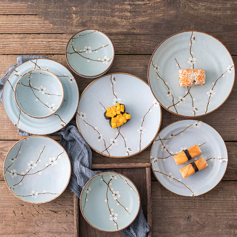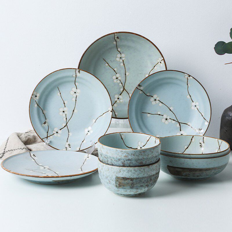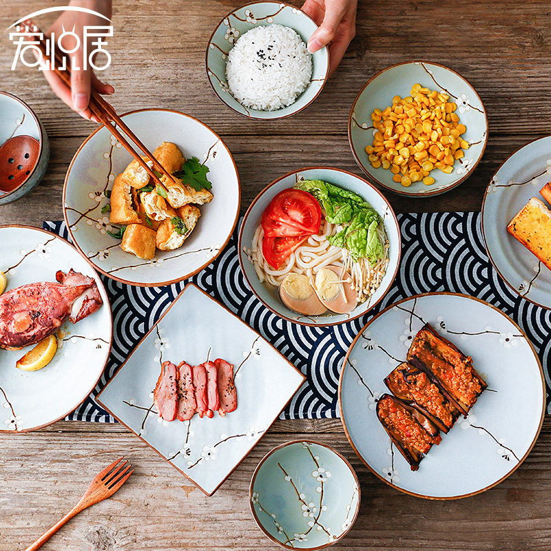 Aiyueju Japan imported blue plum ceramics two people food housewarming tableware set Japanese bowl combination home light luxury