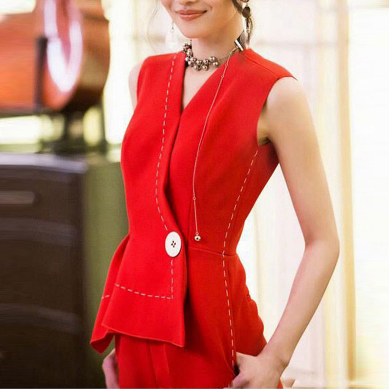 2021 Summer Women's wide leg Lieven suit pants suit High waist Europe stand Slim Stars Same Tidal Slimmer