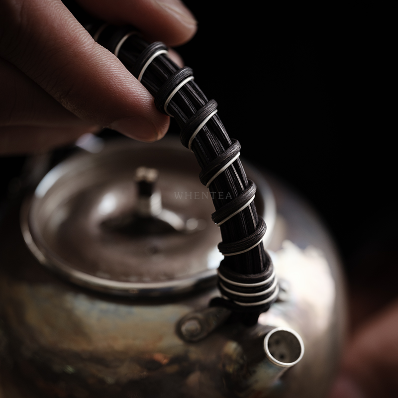 Smell said) retro sterling silver teapot mouth hit rattan bag iron lifting beam 220cc pure handmade Japanese tea set