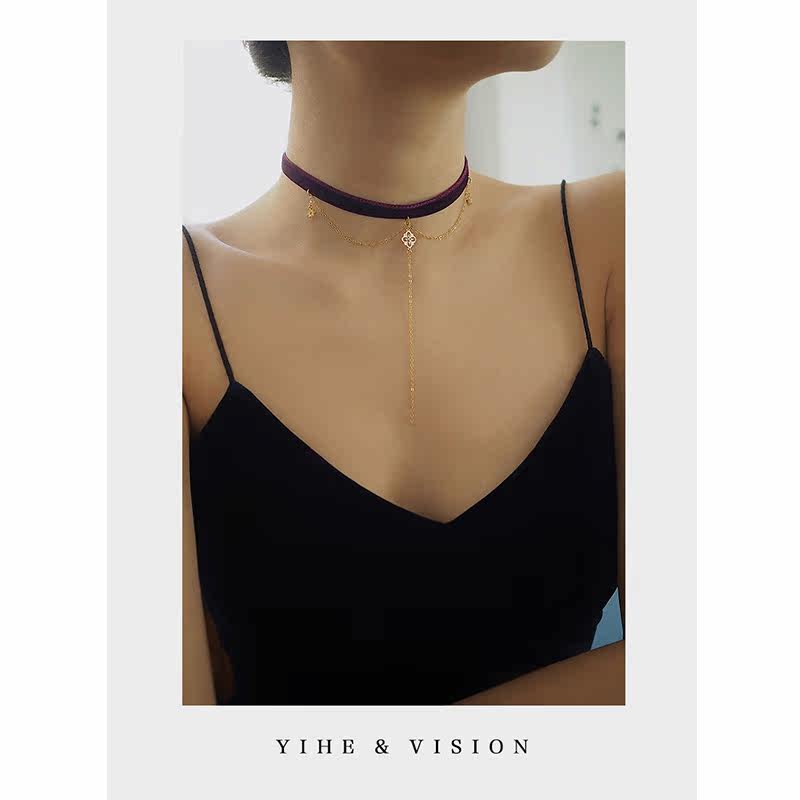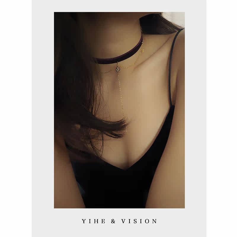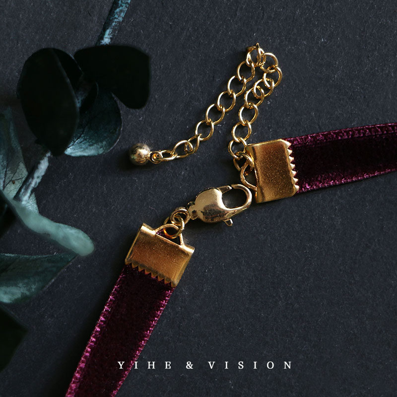 YIHE original design autumn and winter rose purple temperament high-end double-sided velvet long neckband choker