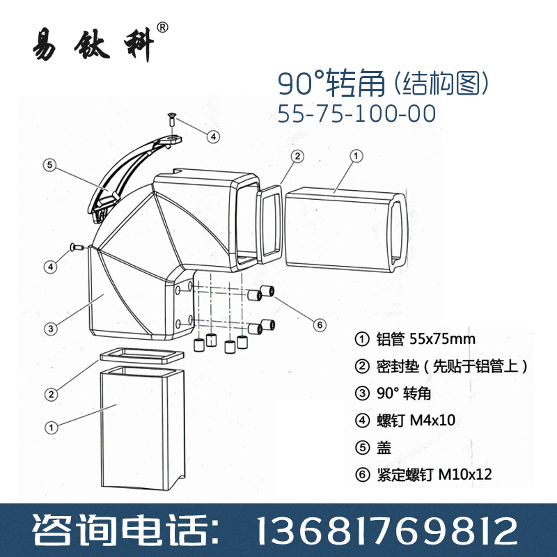 55-75-100-00 Cantilever 90 ° Corner Cantilever Control Box of Jib System Aluminum Alloy Cantilever components