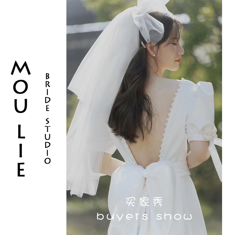 Veil Certificate Photo Props Simple French White Short Proposal Marriage Registration Modeling Follow-Up Ceremony - Taobao