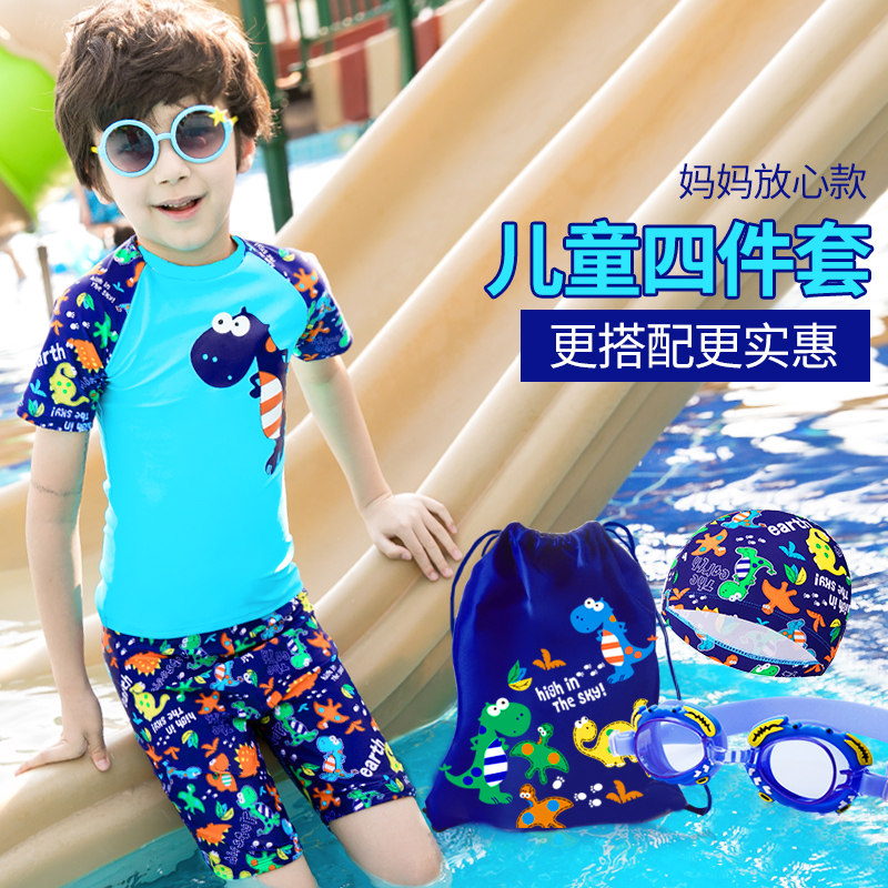 Children's Swimsuit Boys Swimsuit Boys Breakup Small Children's Little Dinosaur Swimsuit Korean Baby Hat