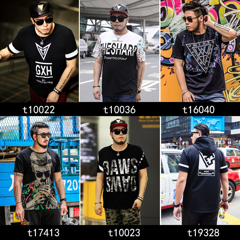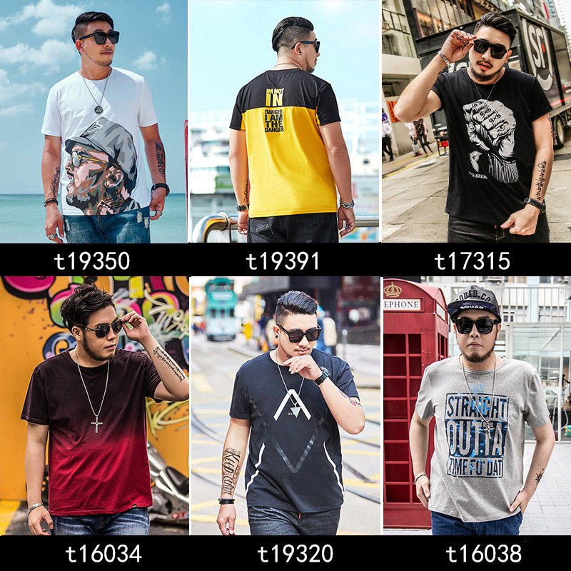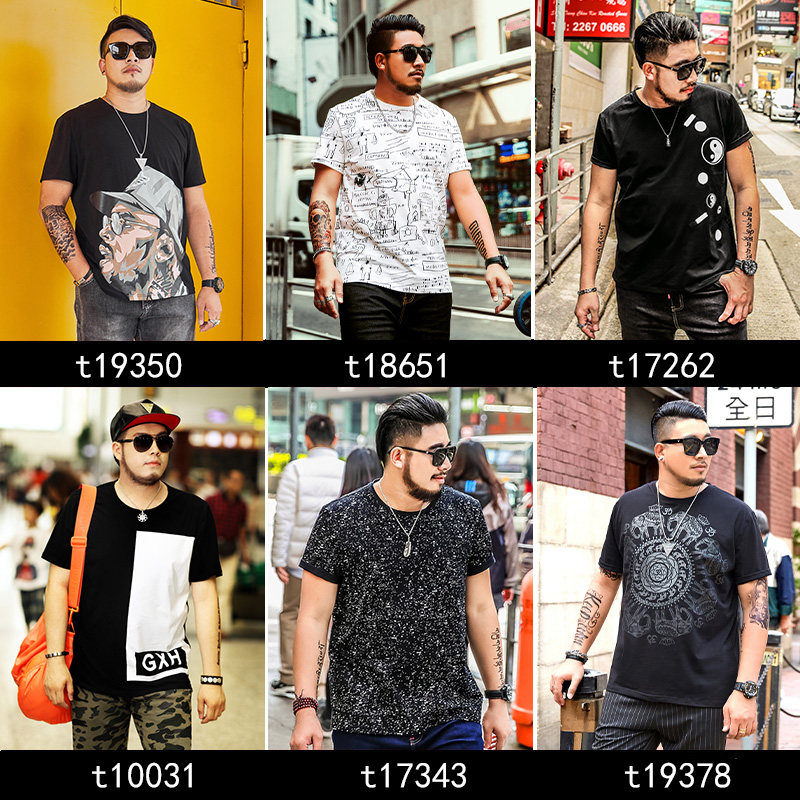 GxxH2019 new summer large size for men's clothing plus fattening up short sleeves t-shirt tide cards Fat easy clothes blouses