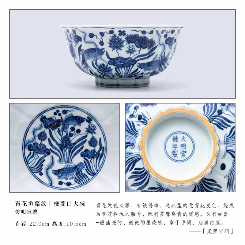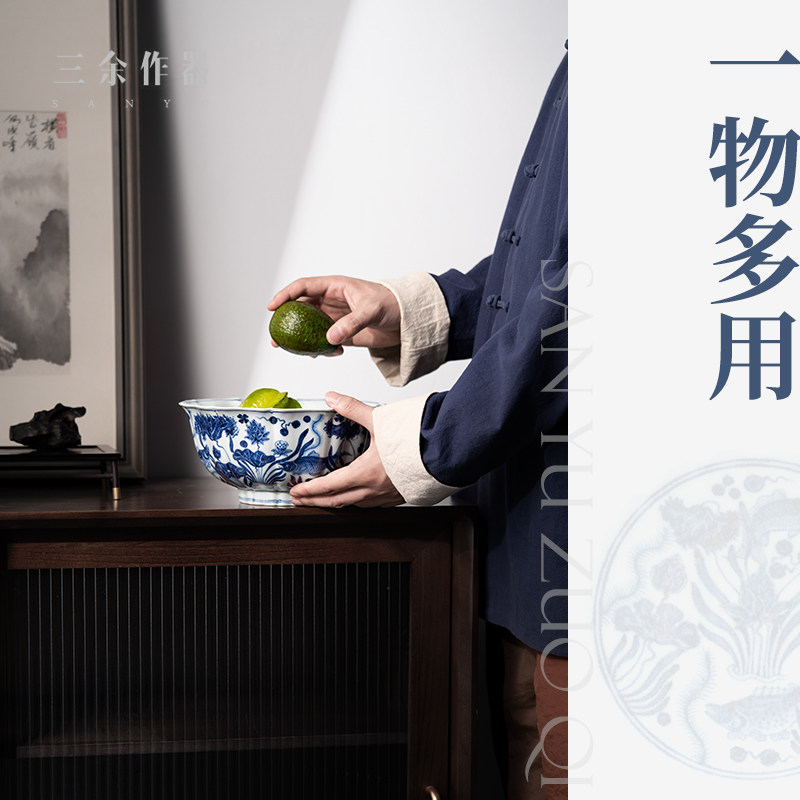 Wilderness Jun products for long time Prestigious Imitation Fish Algae Tattooed Green Flowers ten Sunflower Mouth Large Bowl Tea Wash of Pure Hand