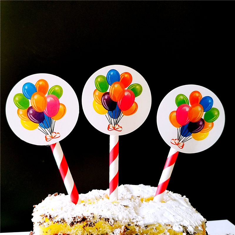 Birthday Cake Decoration Inserts Stick candy Inserted Balloons Cake FLAG DESSERT TABLE ARRANGEMENT CARDS 6 PACKS-TAOBAO