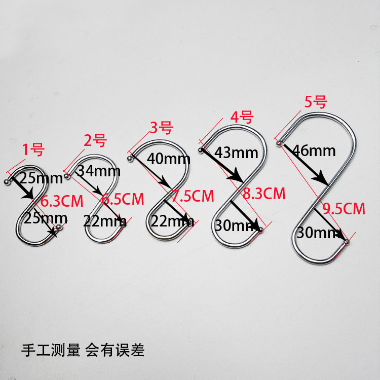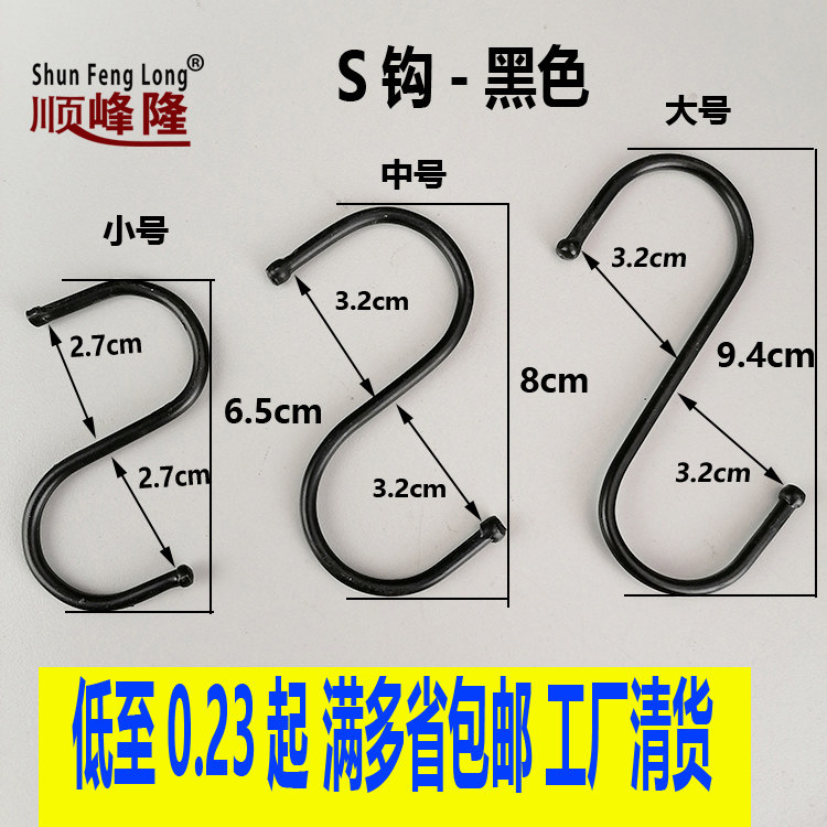 S hook No. -1 S hook -2 S hook -3 S hook No. -4 S hook -5 small black integrated forming in black integrated forming large size black integrated forming