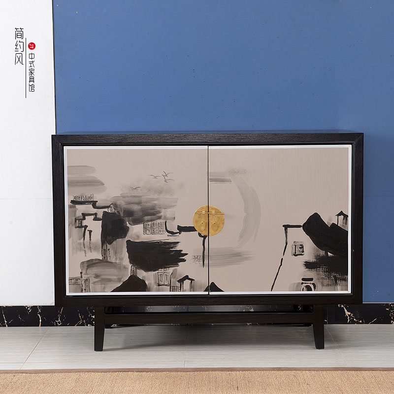 New Chinese Xuan Guan Cabinet Dining Cabinet Living Room Color Plotter Furniture Door Hall Partition Cabinet Solid Wood Hotel Lobby Decorative side cabinet