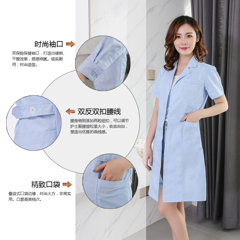 White coat short-sleeved doctor clothing female pink blue summer pharmacy beauty salon nurse skin management overalls