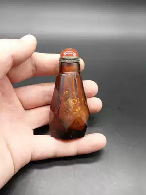Imitation of the Republic of China antiques, old-age colored glaze, imitation Amber sprinkling gold practical snuff bottle collection ornaments gift props