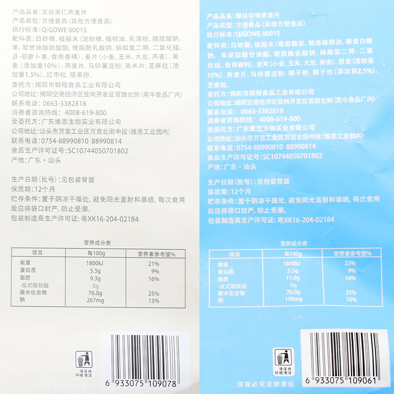Black cattle five-grain oatmeal 800gx2 breakfast nutritional food brewing meal replacement cereal ready-to-eat nutritional oatmeal packet