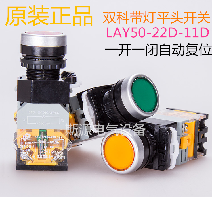 Jiangsu Shuangko Electric LAY50-22D-11 flat button reset button switch red and green yellow white