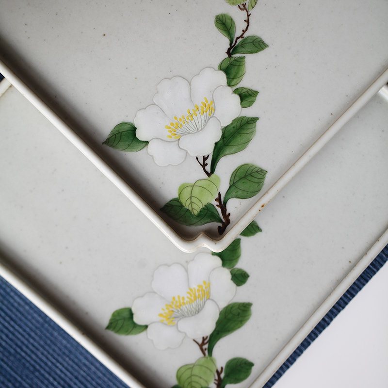 Day-style hand-painted coarse pottery embroidered ball mountain tea flower pot bearing pot dried fruit pan dried fruit pan ceramic flower power tea furniture