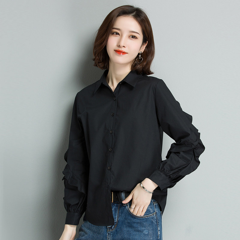 Lace shirt women's long-sleeved Han Fan loose ruffled cotton shirt women's striped spring and autumn new women's bottoming top