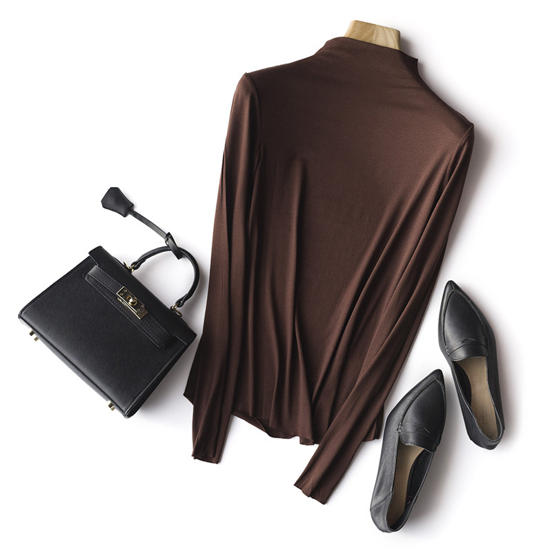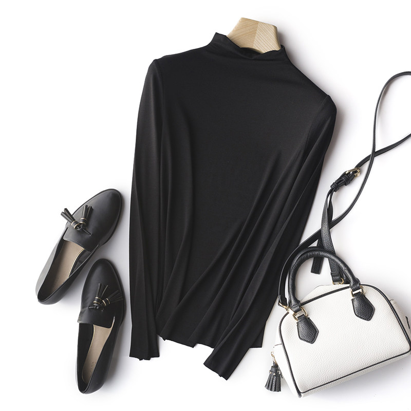 Heart good for stock ten thousand lap soft comfort MoDAI slim fit half high collar Long sleeves T-shirt women's undershirt autumn and winter