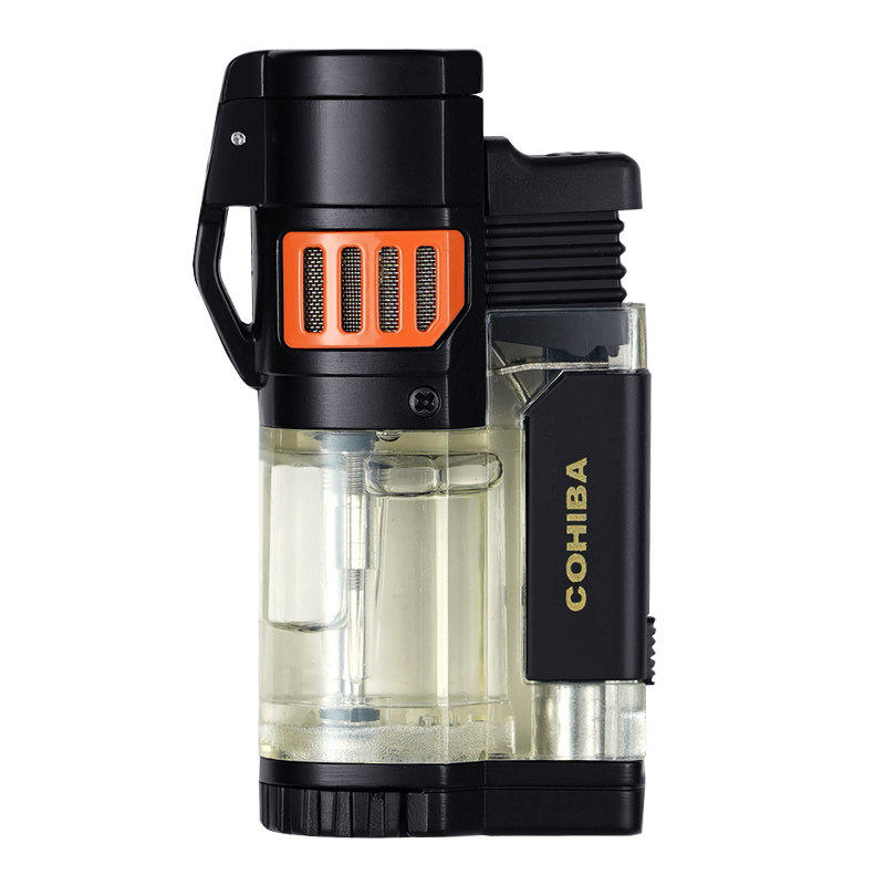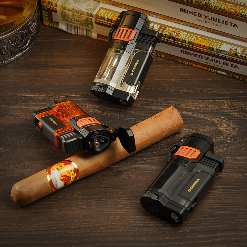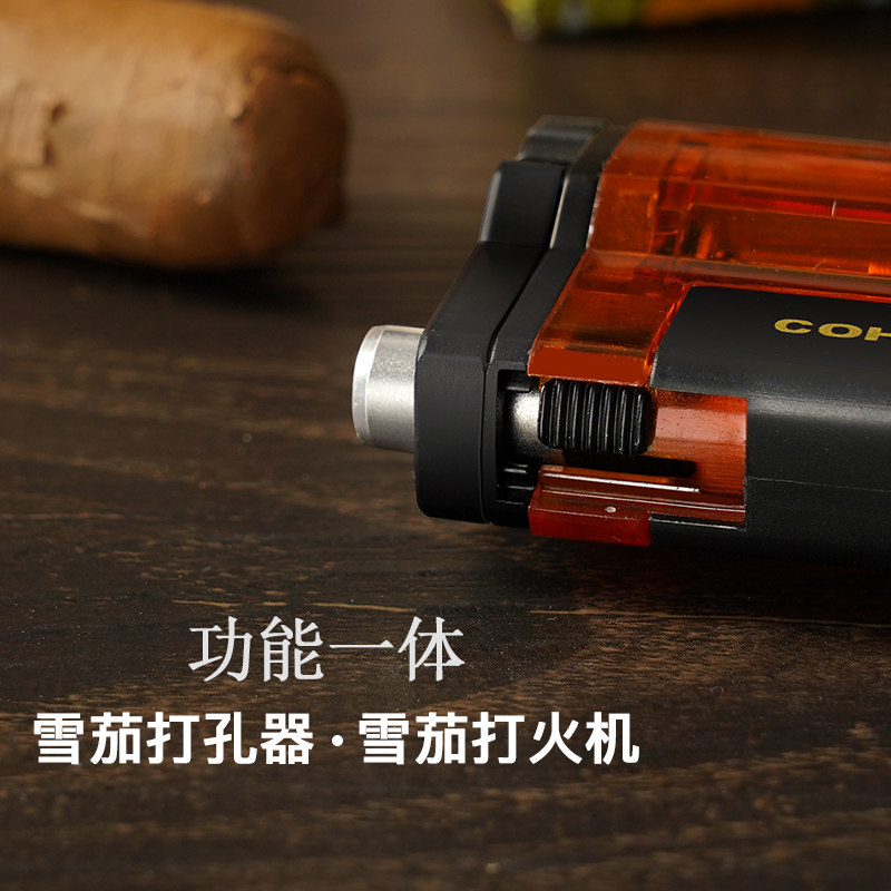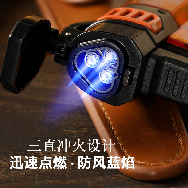Cigar lighter inflatable windproof blue flame triple straight punch lighter built-in cigar drill knife