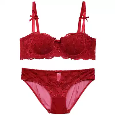 European and American French elegant lace half cup thin sexy underwear set big chest small gathering underwear women