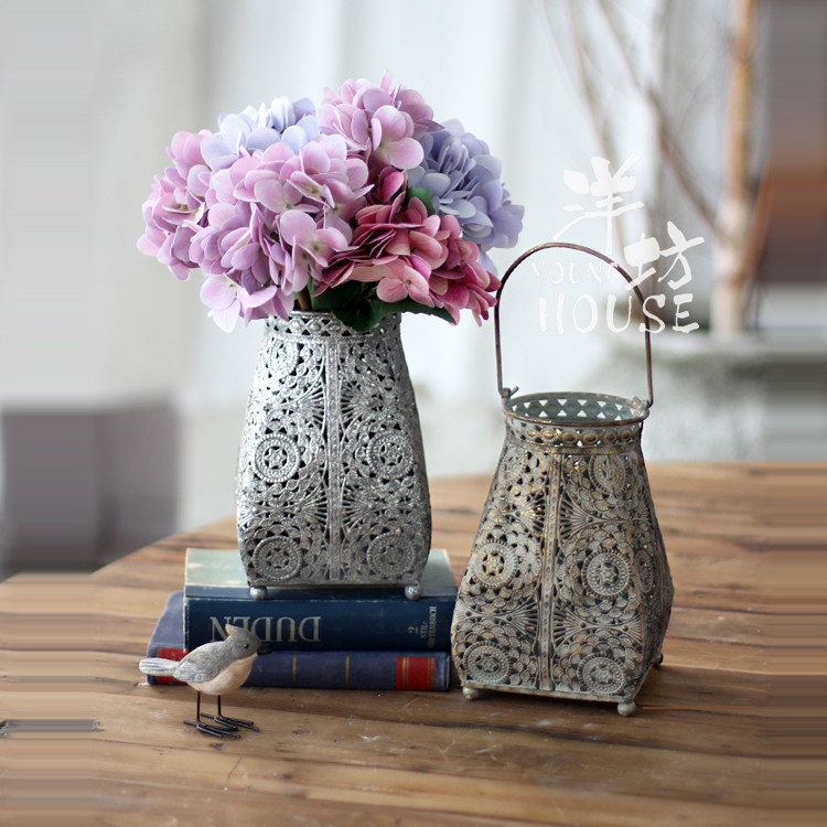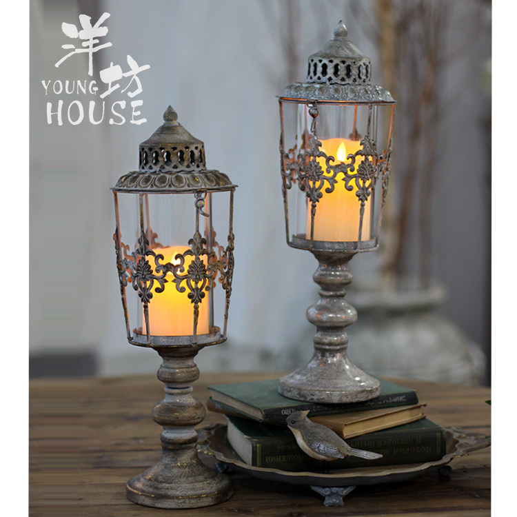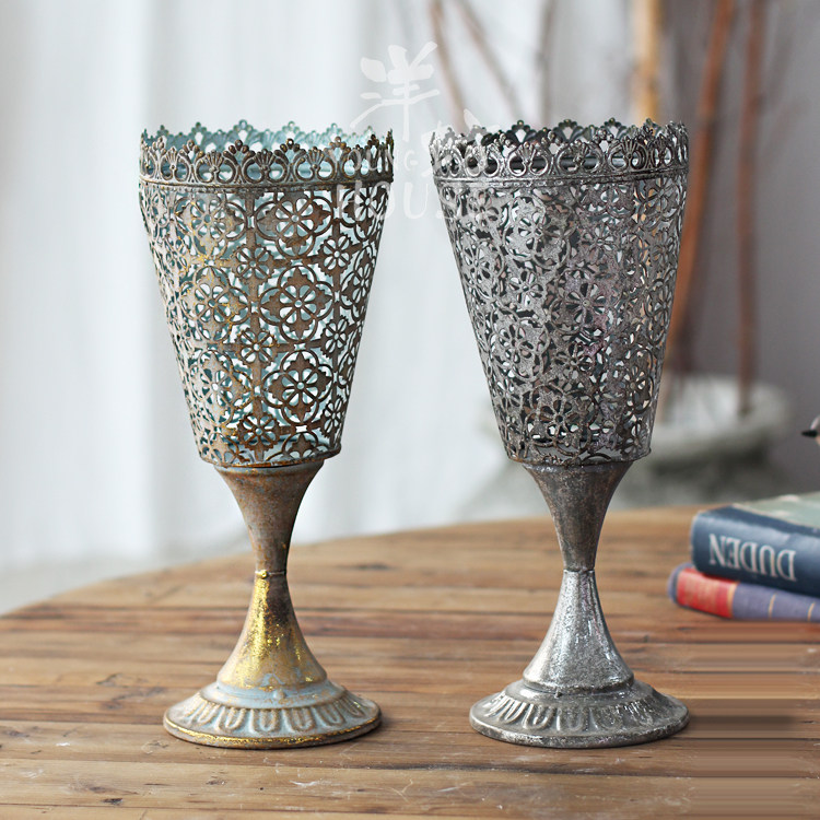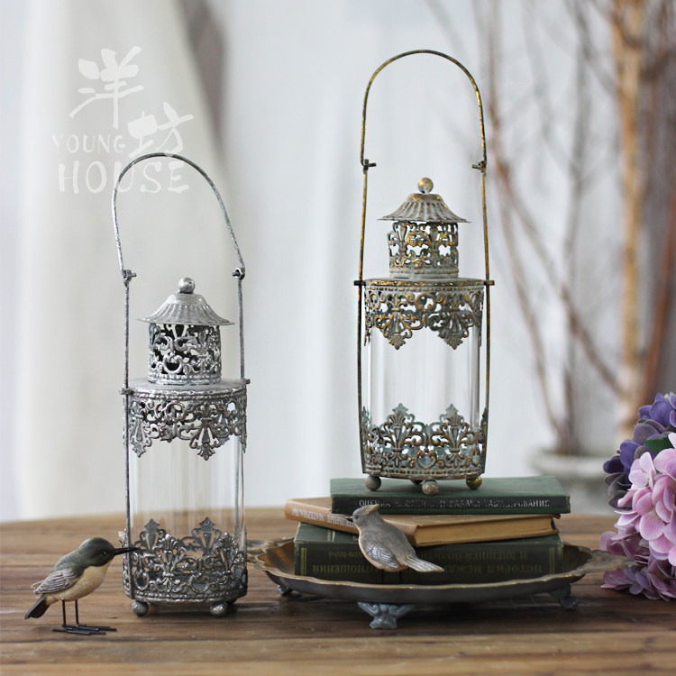 Yangfang Iron Art Glass Windproof Lamp Candle Holder Art Dessert Table Vase Flower Arrangement Instrumental Ins Retro Gold And Silver Color Lighting Lamps