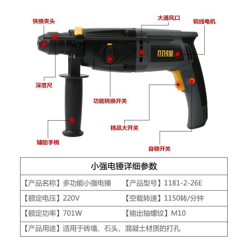 Big and small strong rotary hammer drill Double function electric drill Impact drill Handheld multi-function household electric drill 1181-2-26E