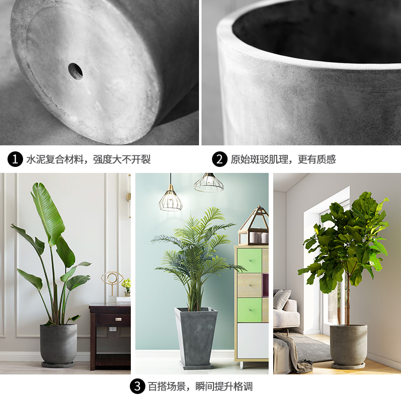 Cement flowerpot Nordic style living room interior decoration floor-to-ceiling flowerpot rectangular large creative simple cement Basin