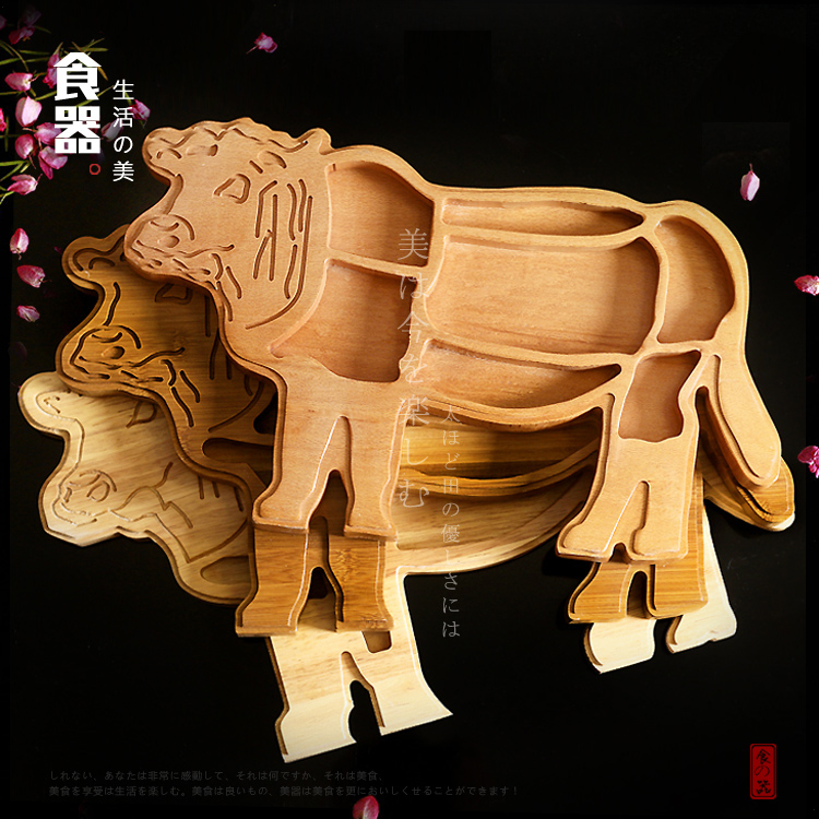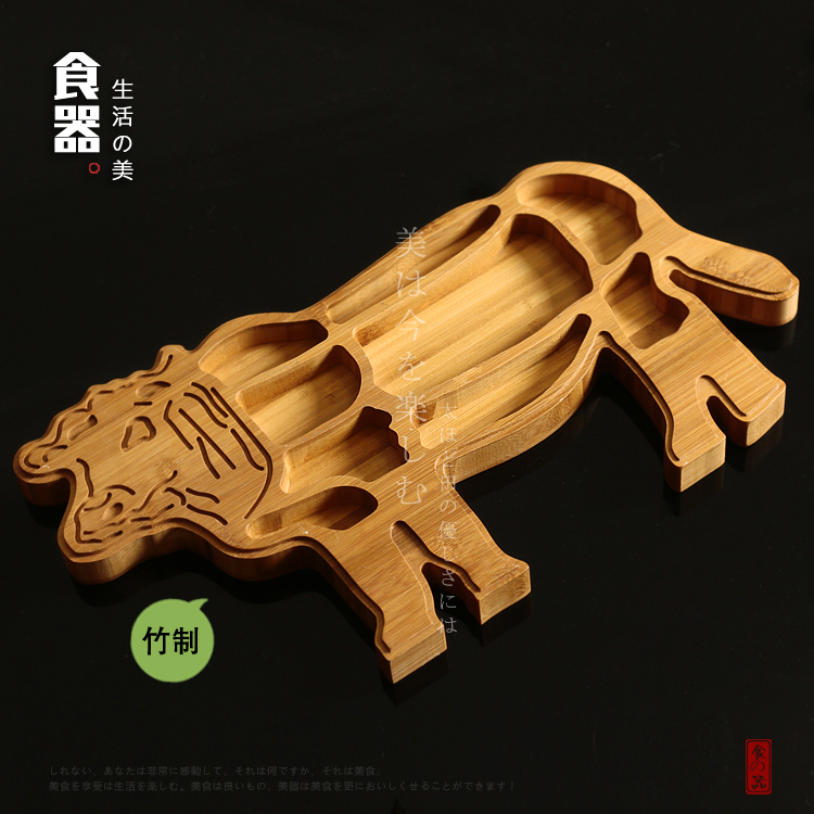 Creative hot pot whole cattle feast plate Chaoshan beef hot pot special cattle-shaped plate beef sub-parts bamboo and wood plate