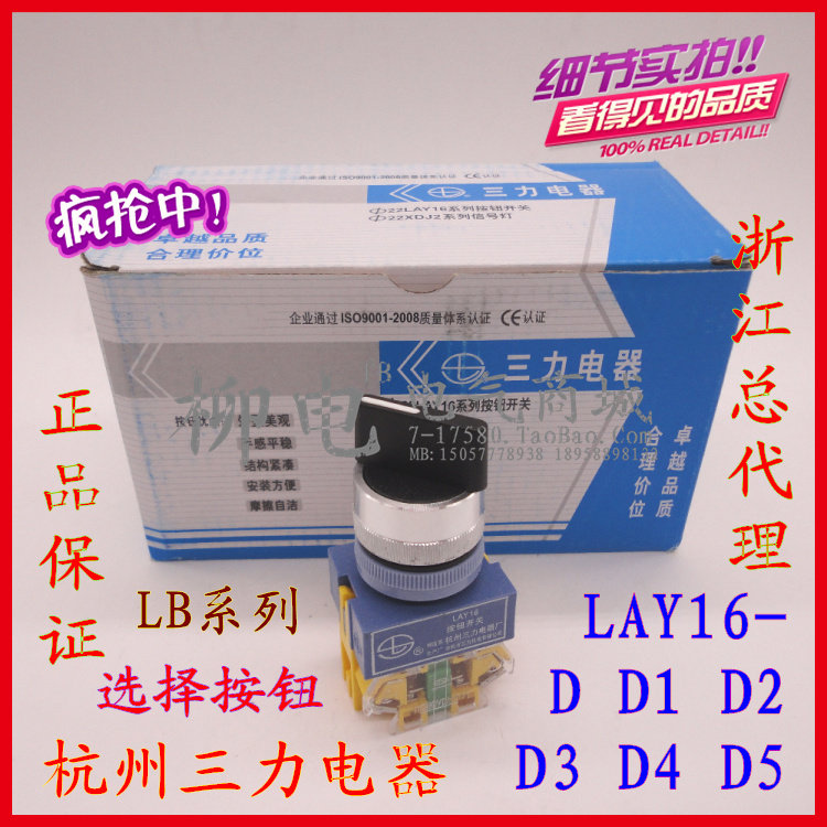 Hangzhou Sanli push button switch LAY16-D two gear LAY16-D2 three gear selection button LAY37 Y090