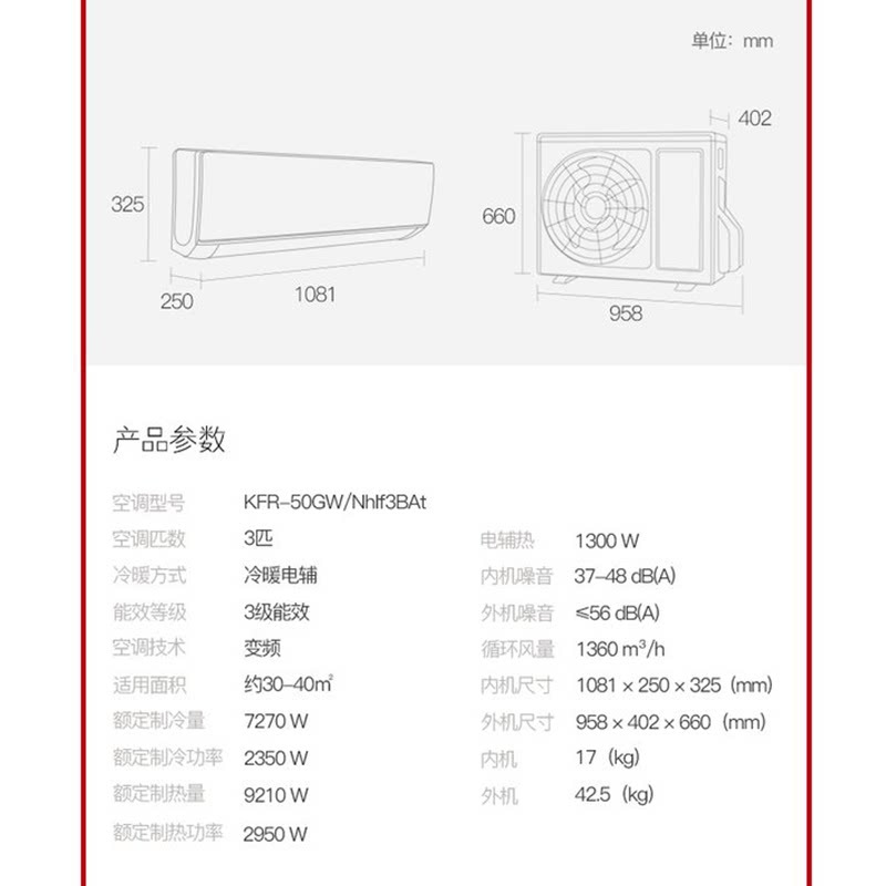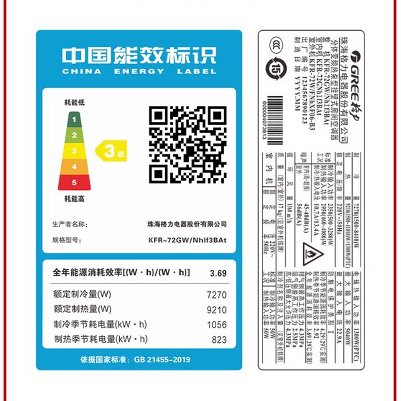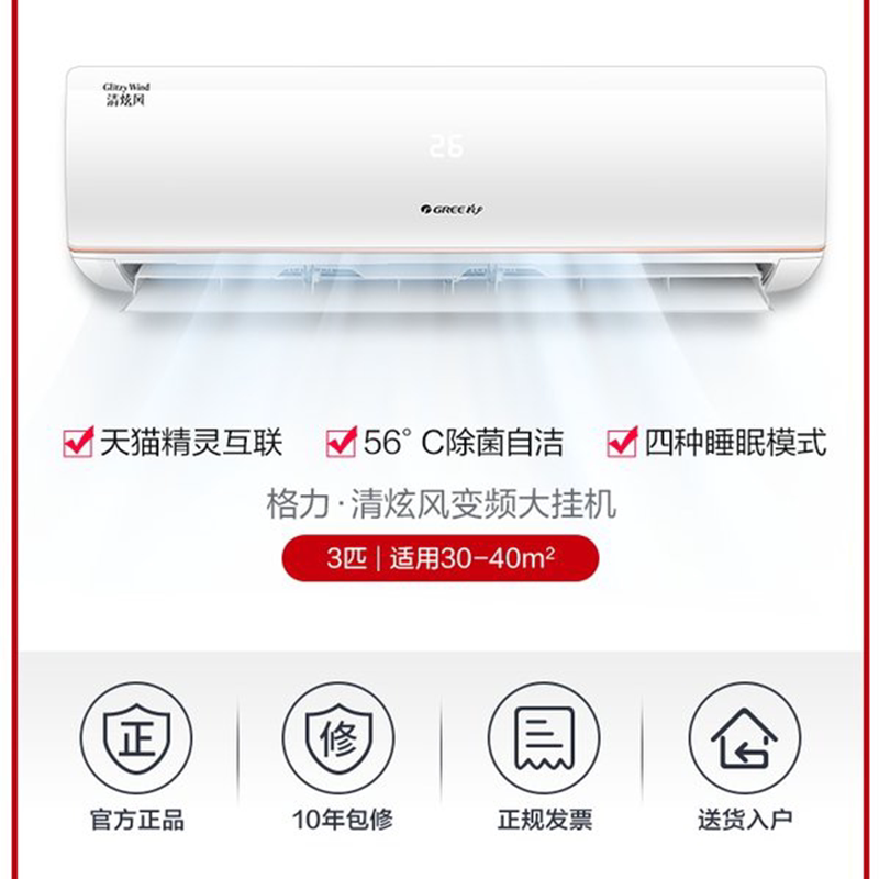 Gree Gree New National Standard Frequency Conversion 3P Class 3 Hanging Air Conditioning Room with Large Wall Hanging Air Conditioning
