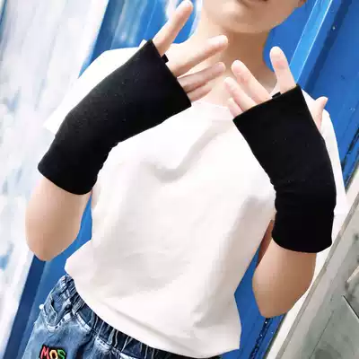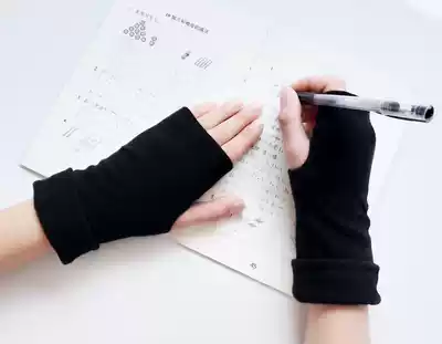 Autumn and winter half-finger gloves women thicken leaky fingers to keep warm students writing exposed fingers Korean version of male couple half-finger gloves wool