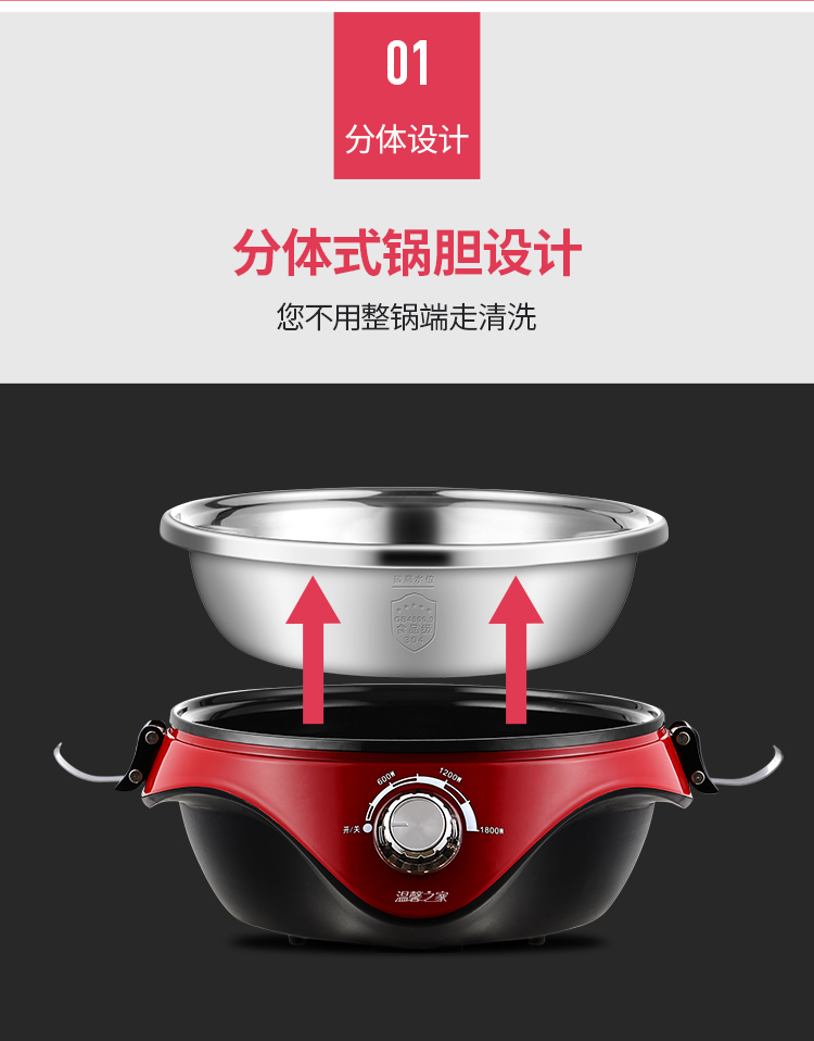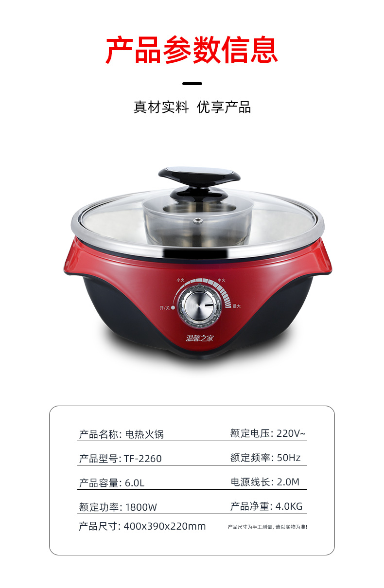 Stainless steel plug-in split type multi-functional household electric hot pot electric pot electric pot 4-6 people separated large capacity electric cooking pot