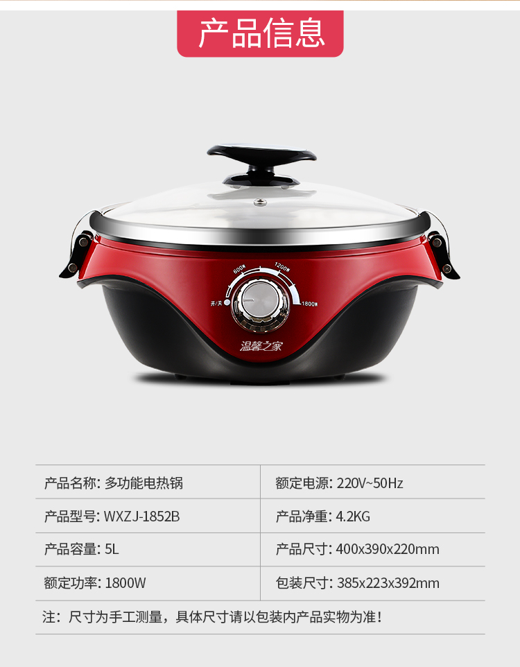 304 stainless steel pot bile electric hot pot red 3L upgraded version thickened deepen 304 stainless steel 3 liters 304 stainless steel pot bile electric hot pot yellow 5L304 stainless steel pot bile electric hot pot red 5L