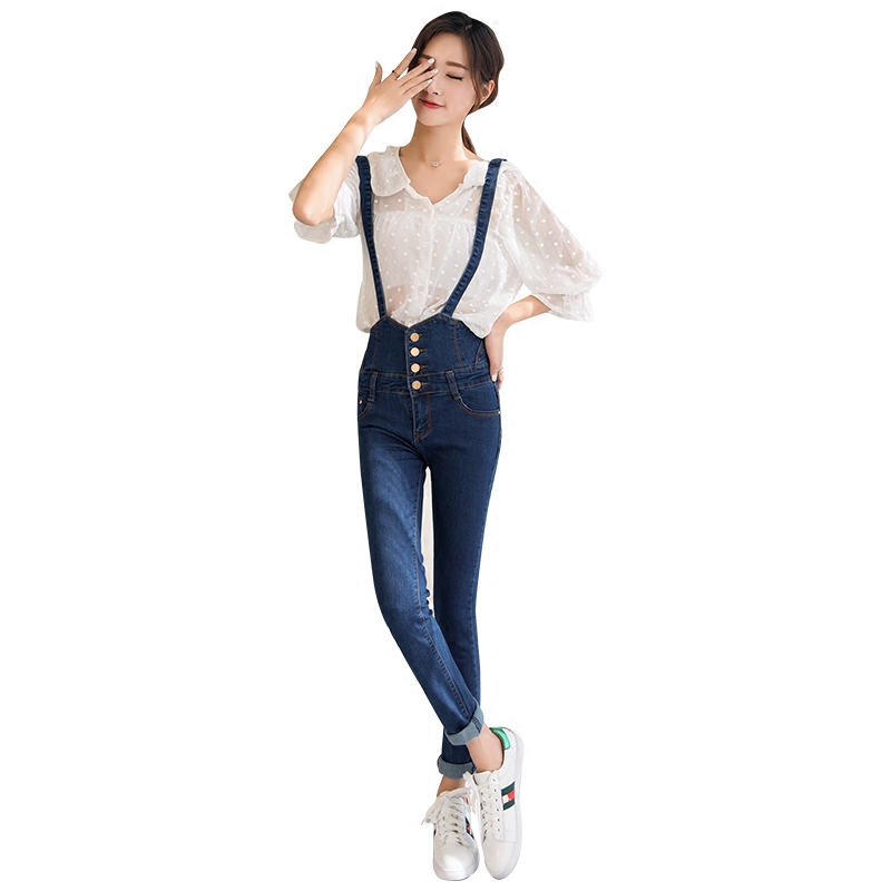 European high-waist jeans with pants Han edition spring and summer new large-scale elastic tight weight slim tight leg pants