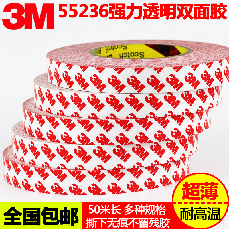 3m55236 High viscosity double-sided adhesive Ultra-thin non-trace high temperature resistant easy to tear non-residual adhesive Translucent strong fixed Spring couplets handmade stationery tape Wedding balloon car waterproof wall cloth wide tape
