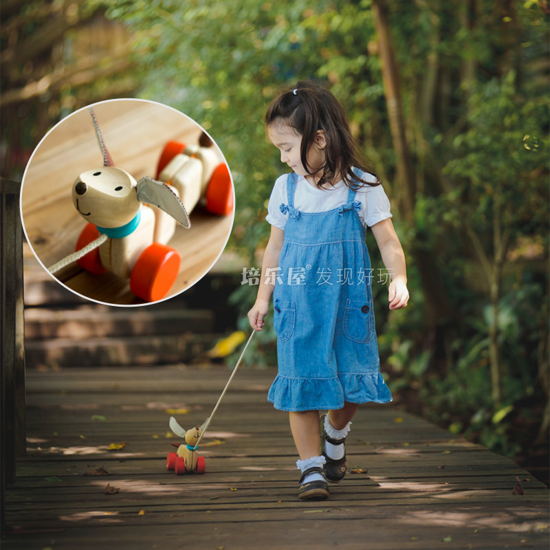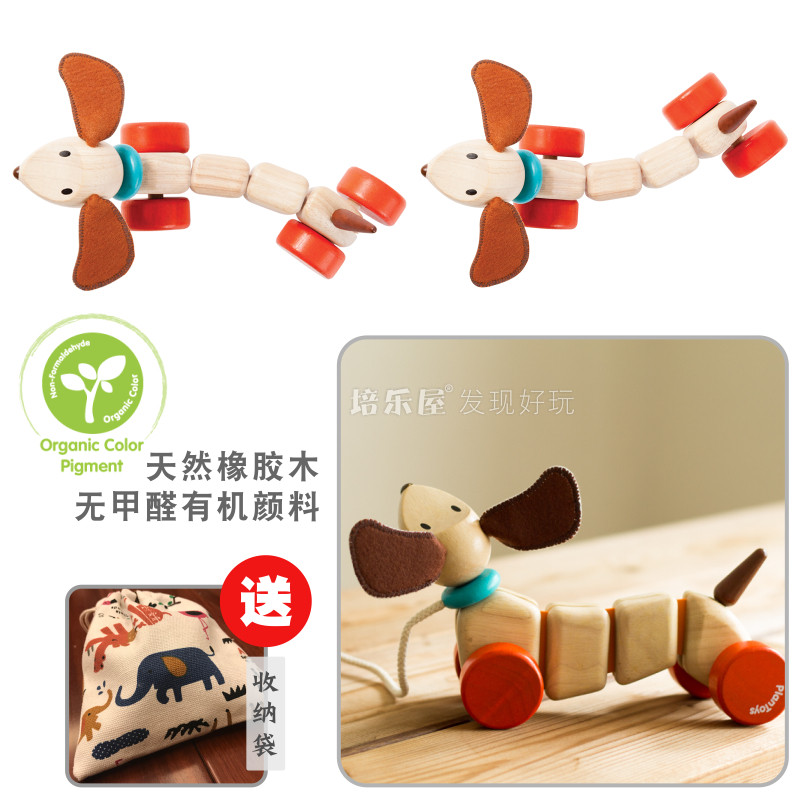 Original imported PlanToys 5101 twisted and pulled dogs Solid Wood crawling walk good mate toy gift box