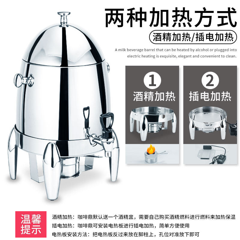 Commercial 12 liters Coffee tripod buffet heated soy milk Milk Insulated Stove Milk Tea Barrel Added Electric Heating Drink