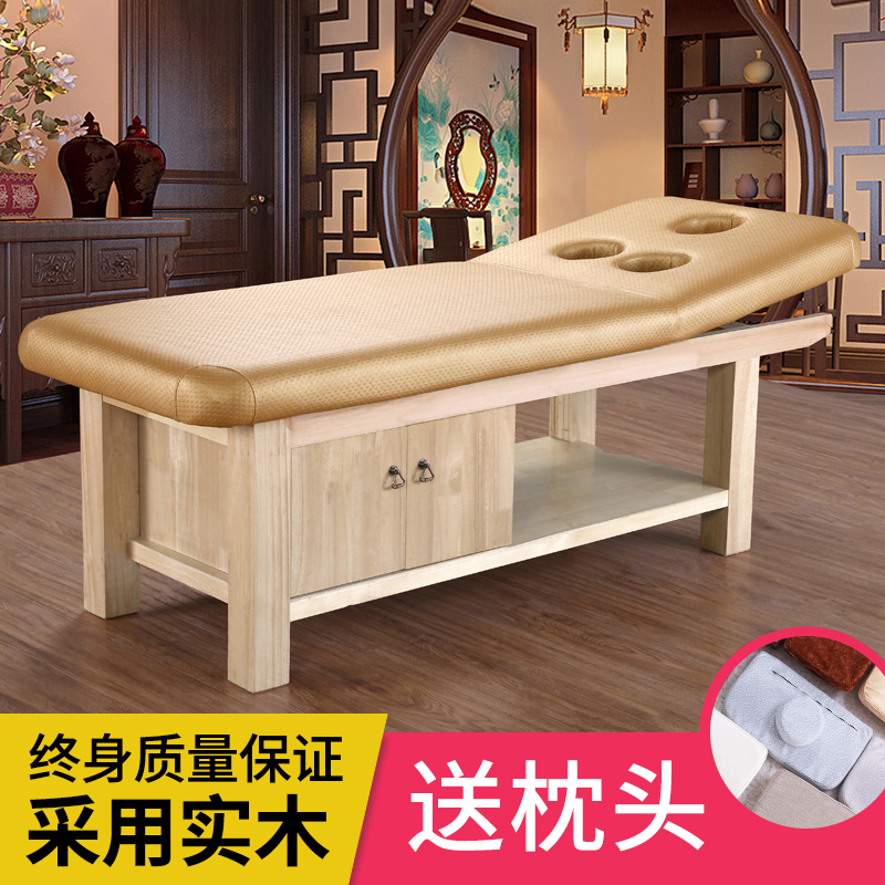 Solid Wood Beauty Bed Beauty Institute Special Bed Massage Bed Home Pushback Folding Bed Physiotherapy Bed Grain Embroidered Bed With Chest Hole-Taobao