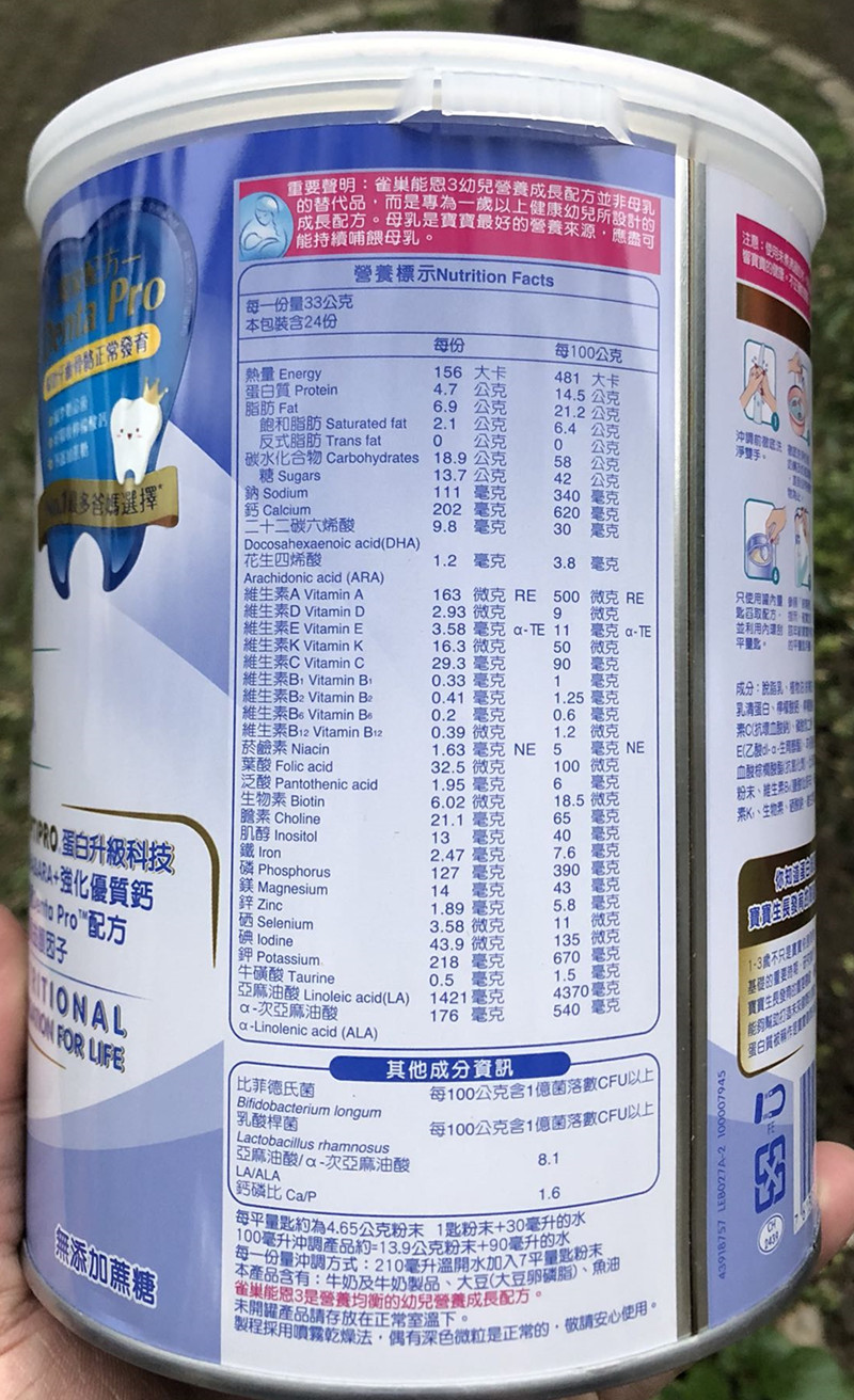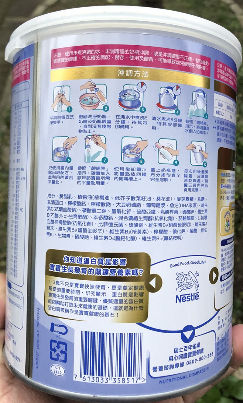 Swiss original Taiwanese version Nestlé Non-hydrolysis Protein Energy N3 Paragraphs Young Children Grow Milk Powder 1-3-800g