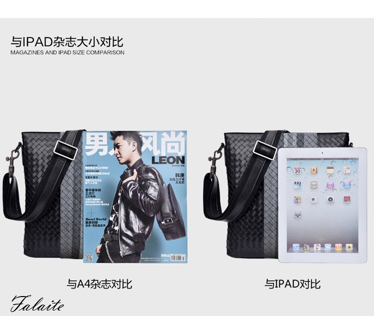 Shoulder bag men's leather casual vertical woven men's bag pure cowhide fashion backpack tide brand men's embroidered messenger bag